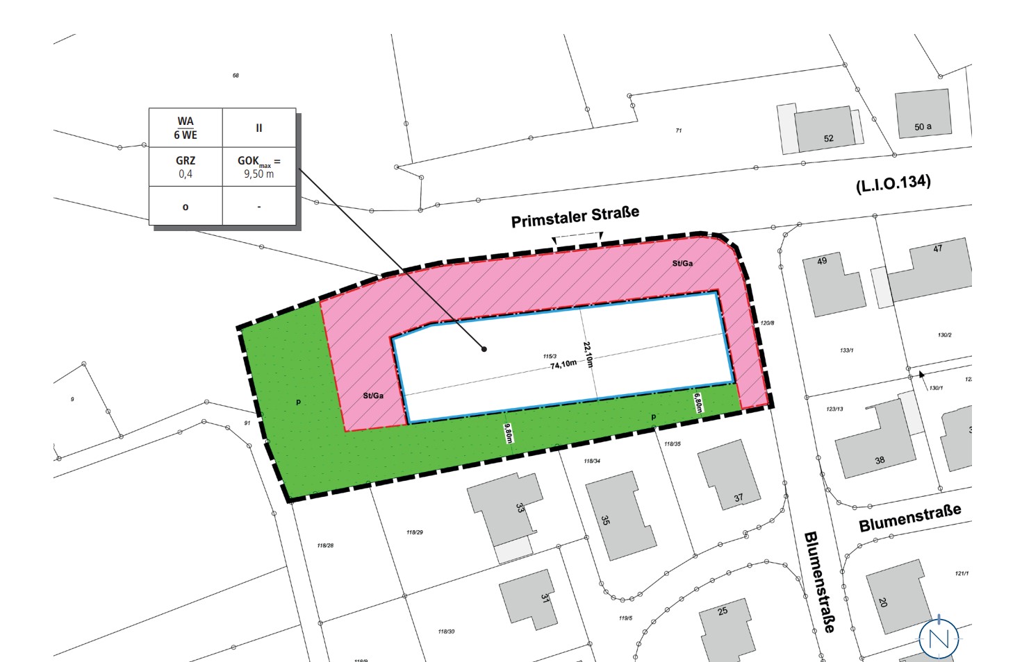 Ca. 4000 qm Grundfläche mit 6 Wohneinheiten insgesamt 631 qm Wohnfläche.