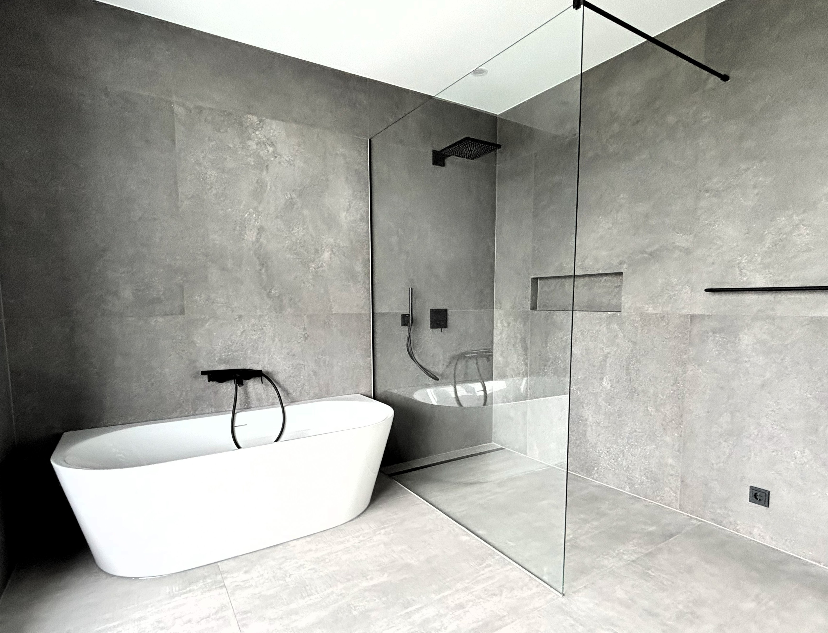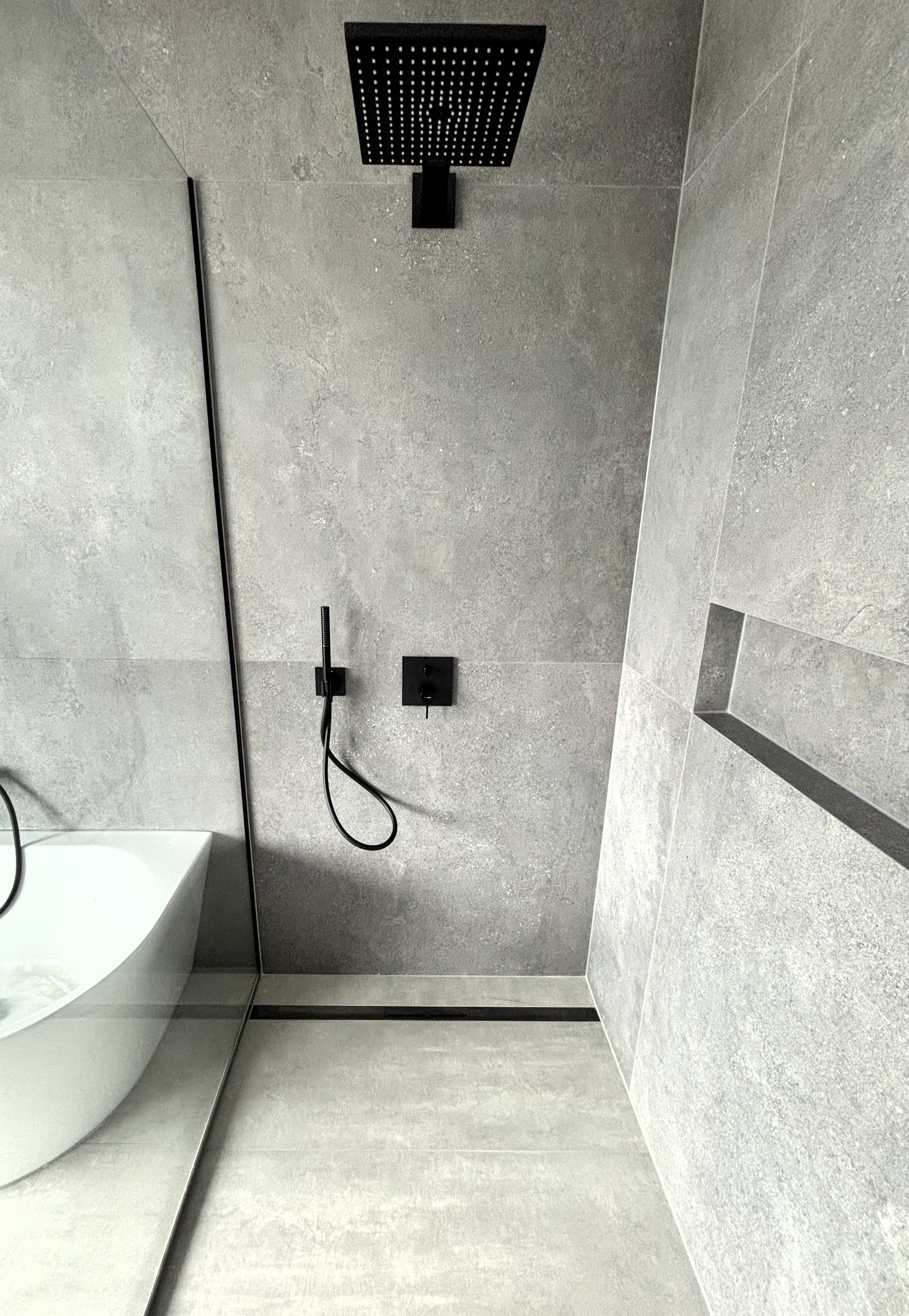 – Duschbad mit großer begehbarer Dusche und Designer Sanitärobjekten z.B. DURAVIT – Starck, Hansgrohe