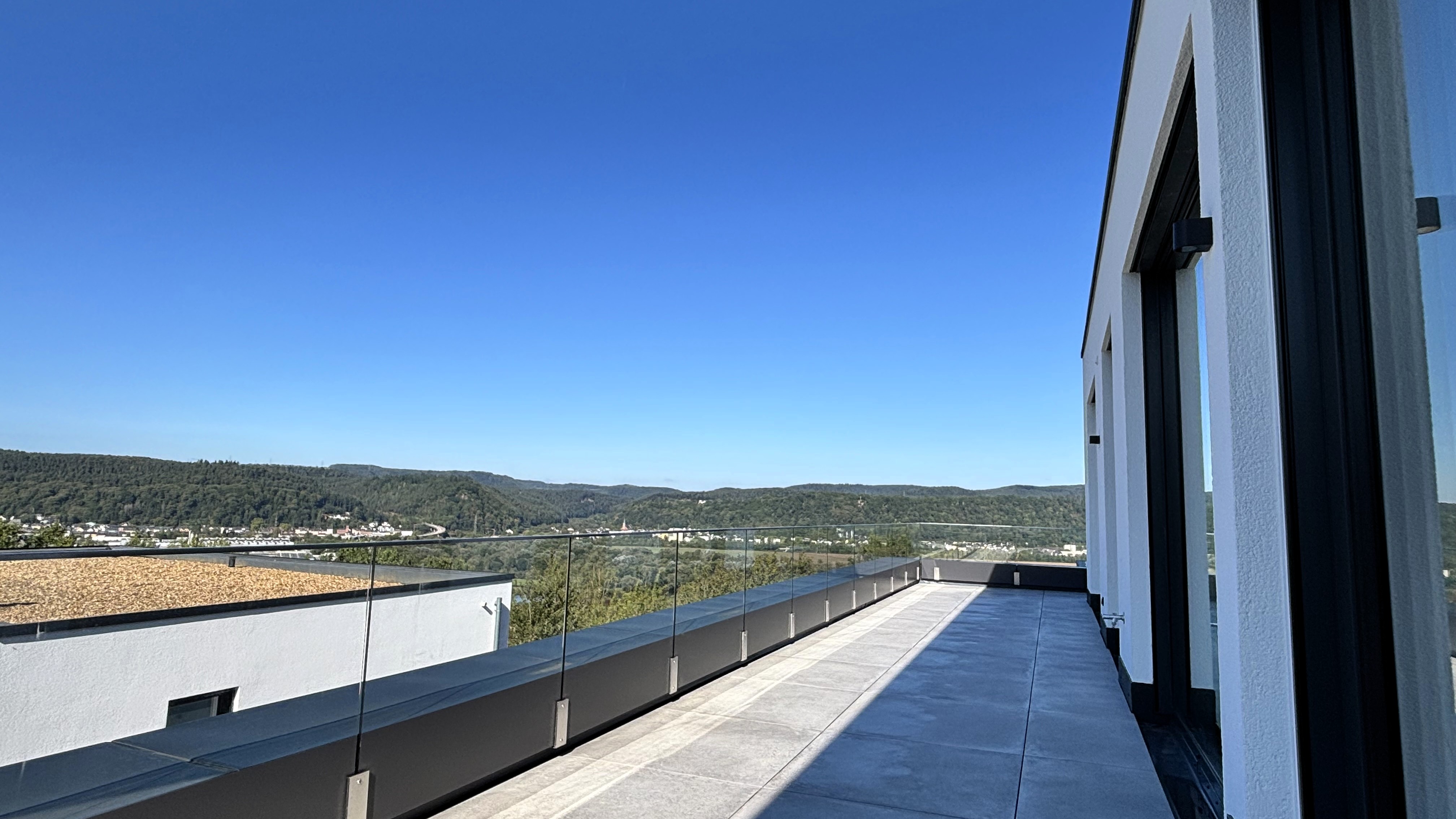 – HIGHLIGHT : Große Dachterrasse mit tollem Panoramablick und Rundumsicht von + 130m² mit Blick nach Trier, Kenn, Ruwer und Ehrang