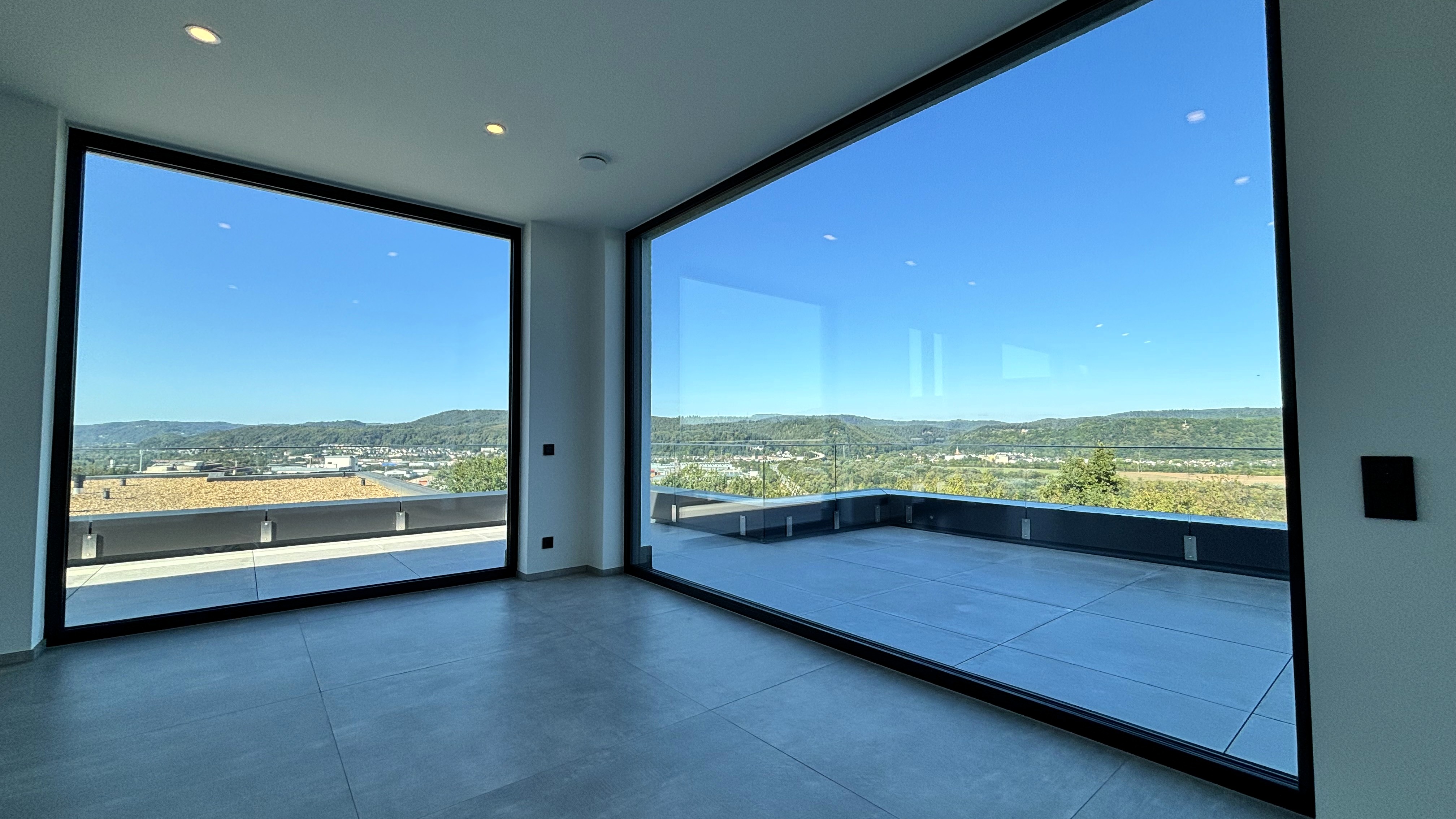 Die Räumlichkeiten sind lichtdurchflutet und bieten einen modernen und stilvollen Wohnkomfort auf höchstem Niveau mit grandiosen Rundumblick auf Trier, Kenn, Ruwer und Ehrang.